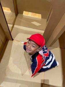 お友達は以前、「もくもくもっくんハウス」体験でも、煙の中での避難を経験していたね(*^-^*)