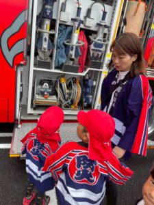 消防士さんからみどり保育園の幼年消防団のお友達へ、任務をもらったよ٩( ”ω” )و