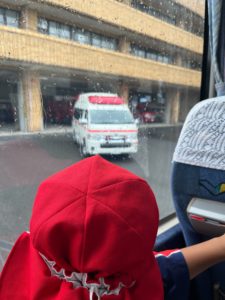バスの帰りに消防署を通ったら、ちょうど救急車が出動するところでした!