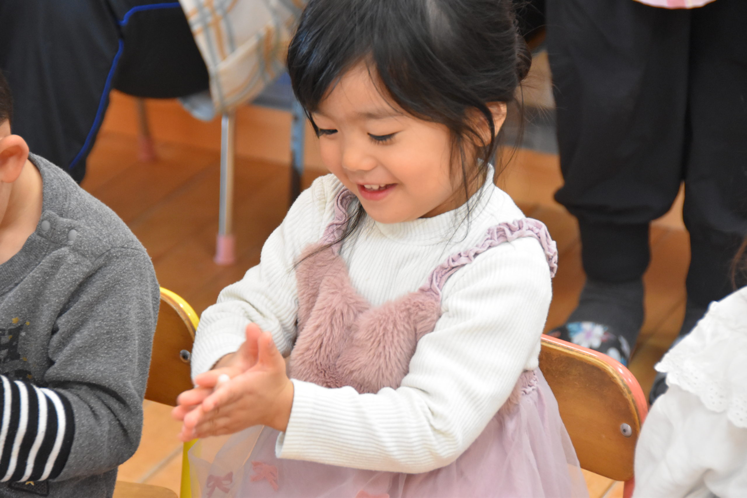 ぺったんぺったん!力強さにお友達から歓声があがっていました٩( ”ω” )و